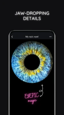 Once Eyepic's clever tech has taken your photos to the next level, a single tap sends your amazing iris photo from the app straight to your favorite social media platforms. Let your friends and followers marvel at your epic eye art. You can also share personalized animation videos that give an insider's view of your eye enhancement journey.