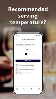 Enter the current temperature of the wine, the size of the bottle, the ambient temperature and the desired serving temperature. The time required to chill or warm is instantly displayed.