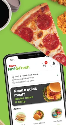 Hy-Vee Fast & Fresh app offers quick access to a wide selection of fresh meals and snacks that you can quickly order and pick up on the go. Simply use the Hy-Vee Fast & Fresh app to conveniently search on-the-go meals and snacks, check gas prices, and find deals and coupons for your nearest Hy-Vee Fast & Fresh.