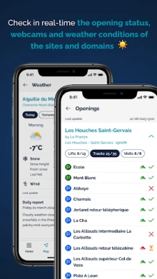 In this application, you will find: - Real-time information on opening hours and weather conditions of the domains and sites - A map to easily locate yourself while discovering all points of interest (ski areas, excursion sites, beginner domains, restaurants, etc.) - The ability to make reservations in one click by adding your pass and those of your participants - A presentation of the territory with a range of detailed information on each site, complemented by explanatory texts, photos, practical information and accessibility for people with reduced mobility (PMR), webcams, etc.